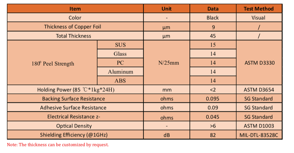TM CFU045DB單面導電黑色箔帶由黑色銅箔背襯和嵌入導電粘合劑中的導電非織造布組成。CFU045DB不僅為小接地面積的可靠接觸提供了優異的體積導電性,而且還增強了膠帶的物理性能,具有良好的可加工性,還具有優異的抗劃傷性能和良好的彎曲性能。" />