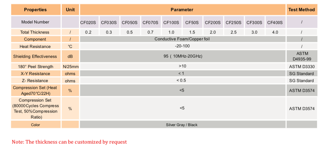 TM CFS系列是一種導電泡棉,其結構由軟金屬電鍍開孔聚氨酯組成 泡棉和具有雙面導電壓敏丙烯酸粘合劑的銅箔。這種高度可壓縮 該結構專門設計用于通過X、Y和Z軸提供EMI屏蔽和接地。 CFS系列基于軟泡棉結構,在寬間隙距離內具有可靠的電氣性能。" />