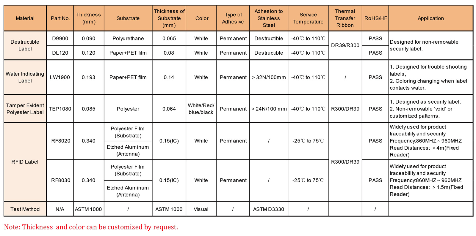 首頁 > 產品 > 印刷 / 模切 > 標簽 > 安全標簽
